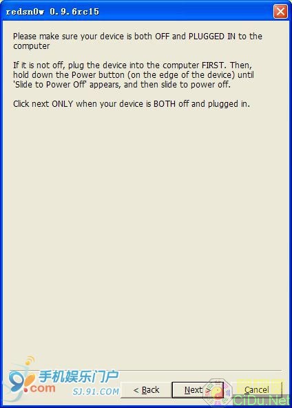 第七步:按提示将iPhone关机,同时保持与电脑连接的状态,随后点击“Next”继续