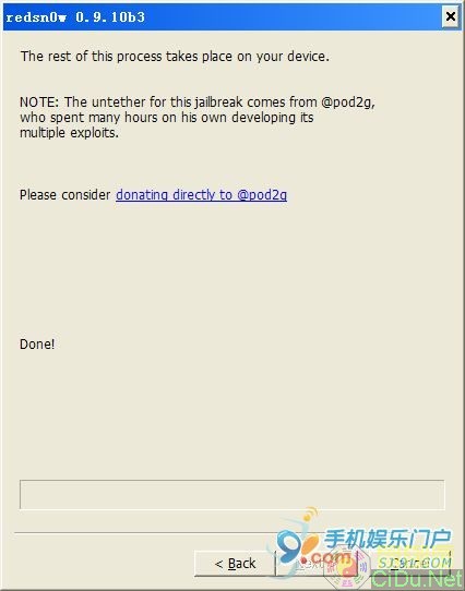 上述步骤完成后,iPhone重启,开机成功后,iPhone上出现cydia,至此,iPhone完美越狱!