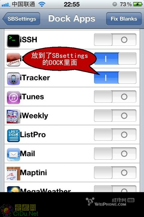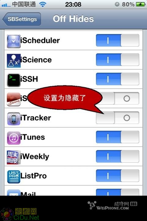 这里需要用到SBsettings。如下图C。