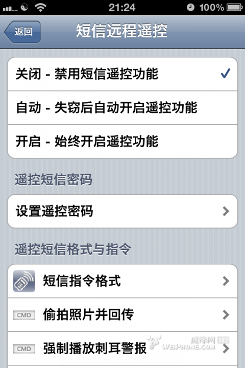 iTracker 3.0,除了原来的当换卡时发送报警短信和GPS位置短信之外,还可以用短信远程遥控。短信遥控功能包括偷拍照片、播放刺耳警报音、重启、关机、隐藏或恢复所有短信和通讯录、转发短信等等。