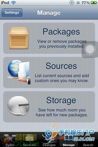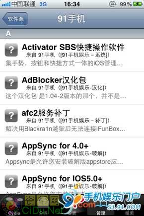 点击进入Cydia,可以在Cydia的管理-软件源-中添加:http://apt.91.com/(91源),搜索安装AppSync for iOS 5.0+,即可开始安装破解软件!注:由于同时添加源的用户过多,服务器压力过大,可能会出现源添加出错的情况,请稍后添加或者选择91源备份地址进行添加:http://dl.sj.91.com/cydia/