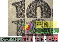 一种伪造方法是使用珠光油墨丝网印刷,有一定的光泽和闪光效果,但其线条粗糙,变色特征与真钞有较明显的区别,只有黄绿色珠光而不具备真钞由绿到蓝的变化(见下图)。//by http://CiDu.Net/
