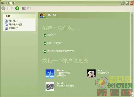 这一步很重要,xp默认GUEST帐户是没有开启的,如下图: