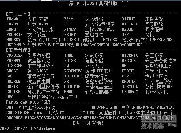 进入DOS工具箱后,运行Diskgen,如下图所示。
