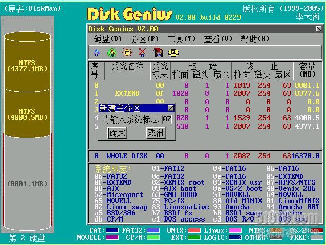 如下图所示,Diskgen要求手工输入分区类型,我们输入NTFS的代码07。
