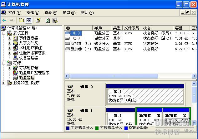 举个例子加以说明,一块硬盘原来有三个分区,分别是C,D,E,D盘和E盘有重要数据。原打算用Ghost在C盘装上一个XP系统,但操作时不小心,把Ghost备份还原到了整个硬盘,这下子硬盘上只有一个C分区了。如下图所示意,这个硬盘共有16G,原先C盘8G,D和E各是4G,现在只有一个C盘,大小是16G。