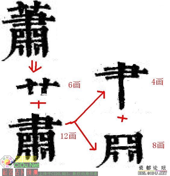有人说:"肖"应按"萧"算,就是18画?(还有说是19画?) 可有的又说:"肖"就是"肖",就是9画。//by http://CiDu.Net/