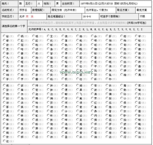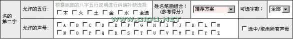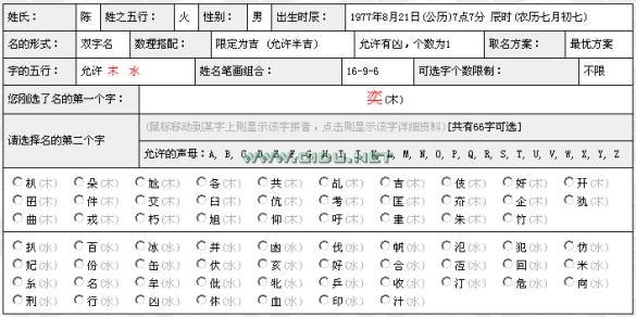你从可选字中,点选一个字,然后输入名的第2字的要求,默认同