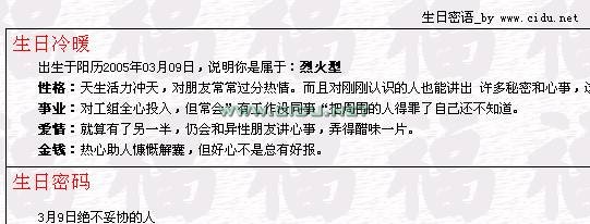 第十一部分 生日密语 ■瓷都在线免费取名算命网址http://cm.cidu.net■