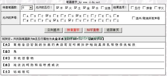 ③则系统将显示所有符合你的要求的字,如下图: